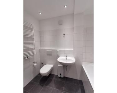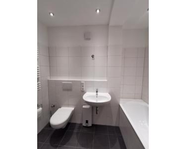 großes Fenster, Bad mit Badewanne und HängeWC, weiß