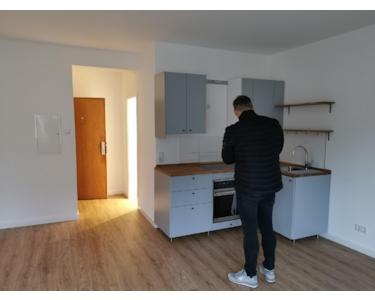 Wände Feinputz weiß, neue Elektroinstallation, Boden Eichefarben,