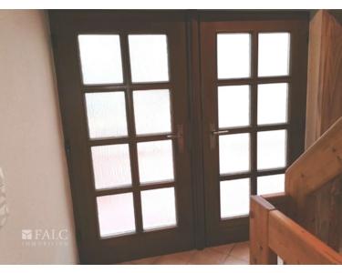 Die Türen sind Massivholztüren und passen sich gut in den Character des Hauses an. Einige Zimmer sind mit Holzboden verlegt. PVC Fenster sind doppelt verglast. Die Haustüre wurde