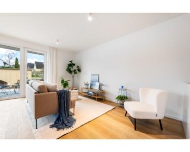 Die angebotene Wohnung Nr. 3 im Erdgeschoss verfügt über ca. 62,27 m² Wohnfläche, 2 Zimmer, ein modernes Tageslichtbad mit Dusche und einen Abstellraum im Untergeschoss. Zur Wohnung gehören außerdem eine Terrasse und ein Sondernutzungsrecht an einer Gartenfläche sowie ein Carport mit separater Abstellmöglichkeit.