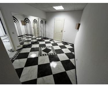 Boden: Der gesamte Bereich ist mit edlem brasilianischem Marmor gefliest und verleiht der Fläche eine luxuriöse Ausstrahlung.