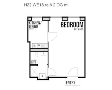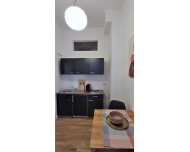 Die angebotene Wohnung verfügt über ein großes, offenes Wohnzimmer und eine Küche, sowie französische Fenster.