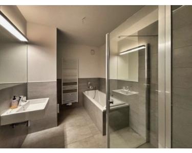 - Bad mit ebenerdiger Dusche und Glastür sowie Badewanne