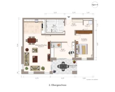 - 99,38 m² Wohnfläche verteilt auf 3 Räume, Bad, Flur, HWR, Balkon