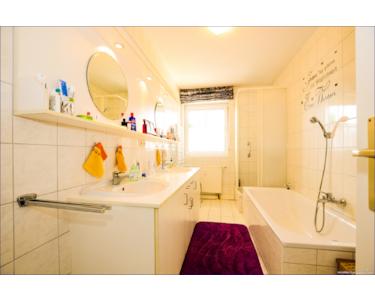 • Tageslichtbad mit Badewanne, Dusche, WC und zwei Waschbecken