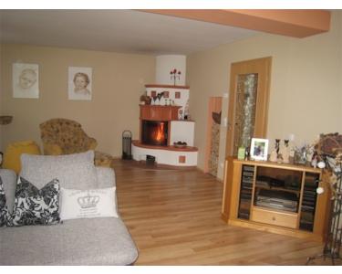 Im großzügigen Wohnzimmer sorgt ein Kamin für behagliche Wärme und ein gemütliches Flair.