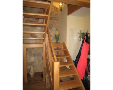 Eine schöne Vollholztreppe samt kleiner Galerie verbindet die 2 Etagen.