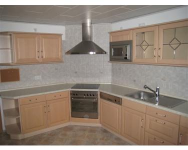 Neben der Einbauküche befindet sich das Esszimmer, an welches sich die große Terrasse anschließt.