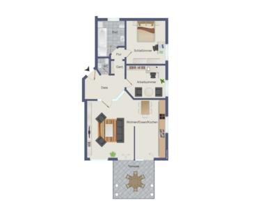 Das große Wohn- Esszimmer mit angrenzender Küche stellt den Hauptteil der Wohnung dar. Von hier aus gelangen Sie auch auf den großzügigen Balkon. Alle Fußböden im Wohnbereich sind mit einem hochwertigen Parkett ausgestattet, die Bäder sowie Küche und Essbereich sind gefliest.