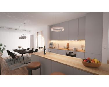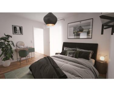 Das Projekt setzt auf Nachhaltigkeit mit Erdwärme für die Warmwasseraufbereitung und einer Photovoltaikanlage auf dem Dach. Die Wohnungen bieten moderne Architektur mit großzügigen, lichtdurchfluteten Räumen und bodentiefen Fenstern. Balkone und Terrassen erweitern den Wohnraum, während der familienfreundliche Gemeinschaftsgarten einen Rückzugsort für Groß und Klein bietet. Für die individuelle Gestaltung stehen Ihnen hochwertige Materialien wie Eichenparkett, Natursteinfliesen und moderne Sanitäranlagen zur Auswahl.