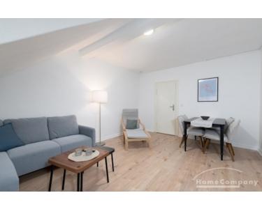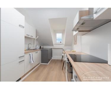 2 Zi.Whg., möbliert, 4. OG (DG, mit leichten Schrägen). Komplett und hochwertig ausgestattet. Miete inkl. Neben- und Energiekostenpauschale sowie Internt-Anschluss (Highspeed Wifi / Glasfaser) 2150,- €. Nur für Nichtraucher. Freies Parken an der Straße.
