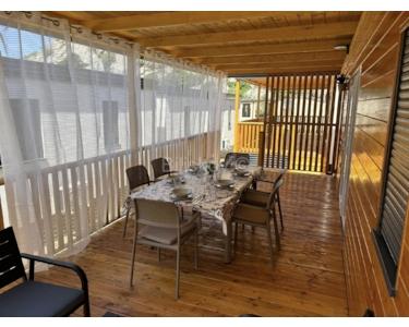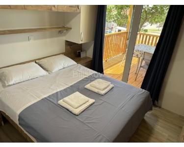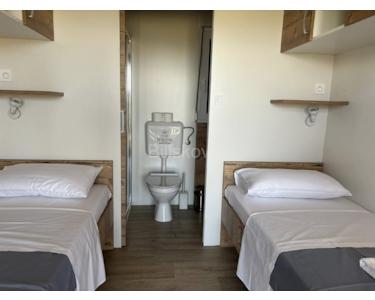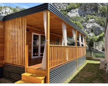 Zwei wunderschöne, komplett neue und ausgestattete Mobilheime mit einer Gesamtbruttofläche von 2x60 m² befinden sich auf einem Campingplatz am Meer. Die Häuser von Kristijan und Paula sind gleich gross und liegen hintereinander. Die Nettonutzfläche jedes Hauses beträgt 36 m², mit einer zusätzlichen überdachten Terrasse von 24 m².