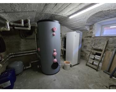 Die Beheizung erfolgt über eine kostengünstige Erdwärmesondenanlage (Tiefenbohrung).