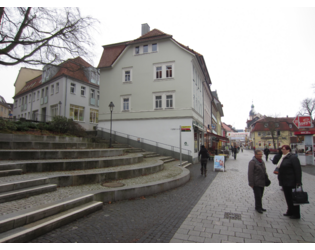 Die Gewerbeeinheit befindet sich im Stadtzentrum von Suhl, nur wenige Meter zu allen infrastrukturell bedeutenden Einrichtungen der Stadt z.B. 30 m mit freier Blickbeziehung zum Rathaus und 60 m zum Marktplatz sowie 20 m zur Hauptfußgängerzone "Steinweg Suhl" entfernt.