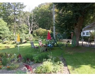 Auch erhielt die Haushälfte einen eigenen Eingang und neben dem ehemalige Parkteich gehören auch Schuppen, Carport und Holzschuppen dazu. Der Garten um den Teich ist eine blühende Oase, die an die schönen alten Parkzeiten erinnern. Mehrere Stellplätze sind vorhanden.