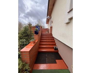 Heute verfügt die Haushälfte über 5 Zimmer, 3 Bäder, 2 Küchen inkl. der Einliegerwohnung, die über eine eigene Küche und Bad verfügt und vielseitig genutzt werden kann.