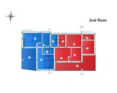 2. STOCK - besteht aus Flur, Badezimmer, Schlafzimmer 2 mit Zugang zur Terrasse, Schlafzimmer 3 mit eigenem Bad und Zugang zur Terrasse.
