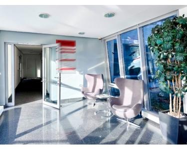 Der große Vorteil ist die Flexibilität des vorhandenen Trennwandsystem. Dieses System lässt Umbaumaßnahmen für die Anpassung der Mieträume entsprechend Ihren Anforderungen zu. So sparen Sie Mietfläche und müssen keine unnützen Flächen anmieten. Ein außen angebrachter Blendschutz lässt sich nach Bedarf herunterfahren. Die vorhandene Teeküche und sanitären Einrichtungen haben einen modernen Standard.