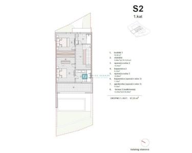 Das Haus S1 mit funktionaler und großzügiger Raumaufteilung verfügt über eine Netto-Gesamtnutzfläche von 168,08 m2 (137,06 m2 Wohnfläche + 15 m2 Swimmingpool + 79,32 m2 Garten + 32,35 m2 Parkplatz). Es erstreckt sich über zwei Etagen: Erdgeschoss + 1. Stock. Im Erdgeschoss von 73,26 m2 gibt es einen überdachten Eingang, eine Eingangshalle, ein Schlafzimmer, ein Badezimmer, eine Küche mit Esszimmer und ein Wohnzimmer mit Zugang zu einer überdachten Terrasse von 14,20 m2. Eine große Schiebewand bietet einen schönen Blick auf den Garten und den 15 m² großen beheizten Swimmingpool mit Liegewiese. Eine Innentreppe führt in den ersten Stock mit 63,80 m2, wo sich ein Flur, ein Hauptschlafzimmer mit eigenem Bad, ein Ankleidezimmer und eine überdachte Terrasse mit 12,60 m2, ein Schlafzimmer mit Ankleidezimmer und ein Badezimmer befinden. Zum Haus gehören 2 Parkplätze. Der Preis beträgt 540.000 € (inkl. MwSt. – der Käufer ist von der Zahlung der 3 % Grundsteuer befreit).