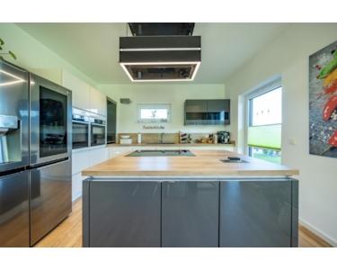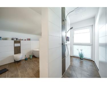 Das Haus präsentiert sich in gehobener Ausstattung. Der Bodenbelag aus PVC vereint Funktionalität und Ästhetik: Er ist nicht nur pflegeleicht und robust, sondern auch allergikerfreundlich und antistatisch, was ihn zu einer idealen Wahl für jedes Zuhause macht. Die Fußbodenheizung sorgt in Kombination mit der energieeffizienten Wärmepumpe für ein angenehmes Raumklima und niedrige Heizkosten. Das Energiekonzept entspricht dem KFW40 Standard, was Ihnen nicht nur eine hohe Energieeffizienz garantiert, sondern auch langfristig Kosten spart.