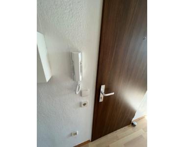 Der Eingang liegt im Durchgang der beiden Gebäudeteile. Die Haustüre wurde im Januar 2025 erneuert.