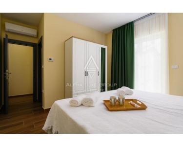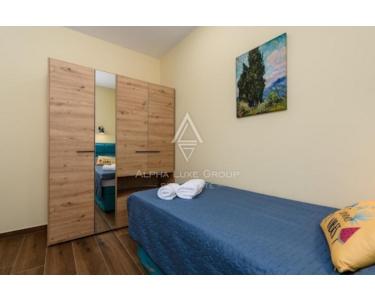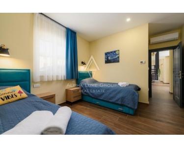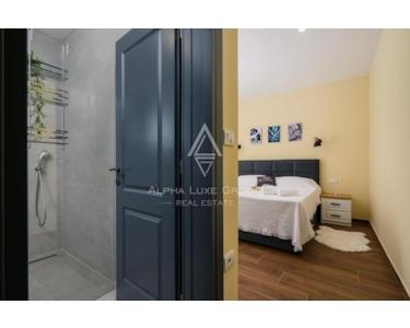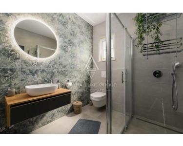 Diese geräumige Residenz befindet sich in einer ruhigen Nachbarschaft, umgeben von Familien- und Ferienhäusern. Sie zeichnet sich durch eine nahtlose Integration attraktiver Außenbereiche mit einem modernen Interieur aus, wobei jedes Zimmer akribisch gestaltet ist. Das Erdgeschoss verfügt über einen offenen Wohnbereich, der eine maßgeschneiderte Küche des deutschen Herstellers Moderano, einen Essbereich und ein Wohnzimmer umfasst, das zu einer überdachten Veranda mit einer Außenküche und zusätzlichem Essbereich führt. Auf dieser Etage befinden sich auch zwei Schlafzimmer, jedes mit eigenem Bad, ein Technikraum/Abstellraum und ein Gäste-WC. Ein separates Studioapartment mit eigenem Eingang und eine interne Eichentreppe, die ins Obergeschoss führt, wo sich ein weiteres Schlafzimmer, ein großes Bad und eine überdachte Terrasse befinden, runden das Layout ab.