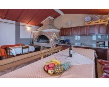 Auch das Äußere des Anwesens ist beeindruckend und bietet 6 überdachte Parkplätze, eine traditionelle Taverne mit Kamin, einen Außenpool mit überdachter Terrasse und einen Volleyballplatz, was es zu einem Paradies für Freizeitaktivitäten und Outdoor-Vergnügen macht. Der 32m2 große Swimmingpool und der Volleyballplatz sind herausragende Annehmlichkeiten, die den Gästen viel Genuss bieten, ohne das Gelände verlassen zu müssen. Die 25 m2 große Taverne mit Kamin bietet einen gemütlichen Rückzugsort bei weniger günstigem Wetter. Dieses Haus ist voll möbliert mit allen notwendigen Geräten für einen komfortablen touristischen Aufenthalt und ist sofort bezugsfertig. Zudem wurden alle erforderlichen Genehmigungen für die touristische Vermietung gesichert.