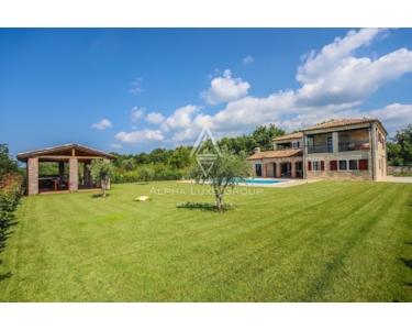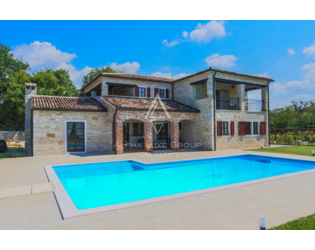 In dem idyllischen Dorf Rajka in Istrien gelegen, präsentiert sich diese exquisite Steinvilla auf einem großzügigen Grundstück von 1.772 m², das traditionellen Charme mit modernen Annehmlichkeiten auf zwei Etagen vereint.