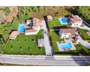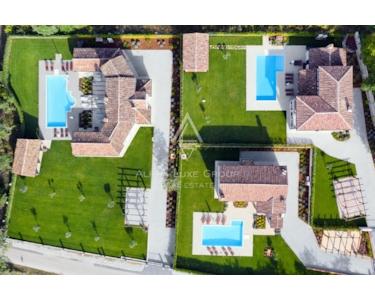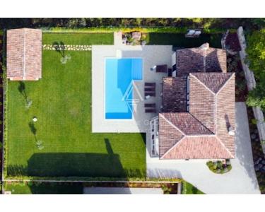 Im Außenbereich beeindruckt das Anwesen mit einem 60 m² großen Swimmingpool, umgeben von einer Sonnenliegefläche mit Liegestühlen und einem 40 m² großen Pavillon, der eine Sommerküche und einen Grillbereich beherbergt, ideal für Unterhaltung oder Essen im Freien.