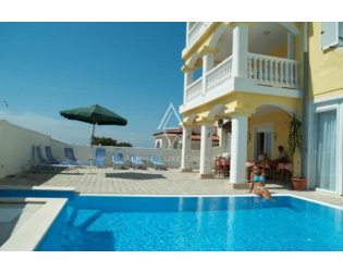 Das Hotel erstreckt sich über drei Etagen und verfügt über eine beträchtliche Wohnfläche von etwa 930 m2. Das Erdgeschoss ist einem geräumigen Restaurant gewidmet, das den Hotelgästen dient und durch einen gemeinsamen Swimmingpool ergänzt wird. Der Poolbereich mit seinem ausgedehnten Strand und dem faszinierenden Meerblick ist ein Highlight für Besucher.