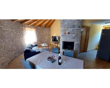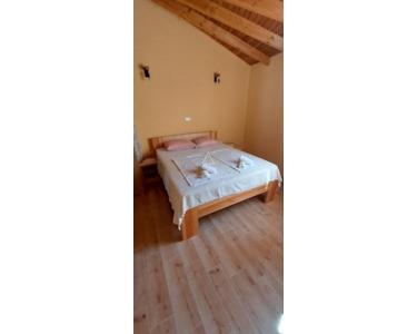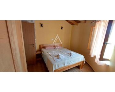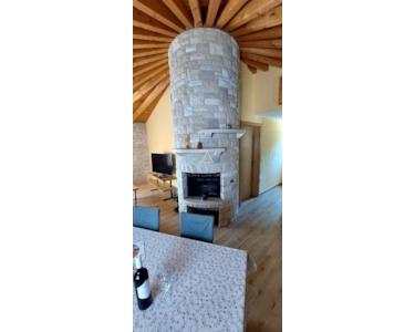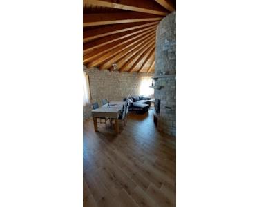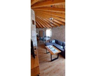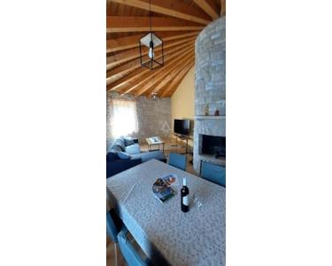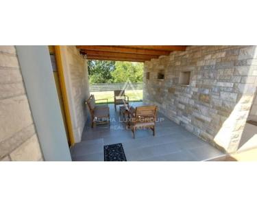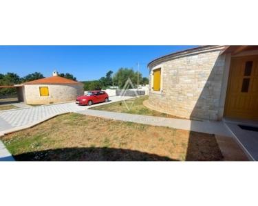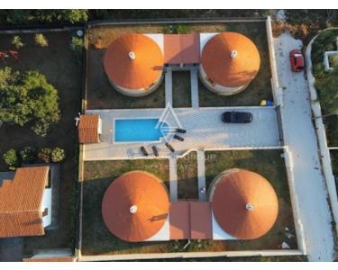 Jeder Kažun umfasst 74 m² und verfügt über ein Schlafzimmer, ein Badezimmer, ein geräumiges Wohnzimmer und eine Küche mit Essbereich. Die maßgefertigten Möbel aus Massivholz ergänzen die runde Struktur dieser Häuser. Der überdachte Eingangsbereich dient zugleich als Terrasse, ein idyllischer Ort für den Genuss im Freien. Der Komplex verfügt zudem über einen gemeinsamen Swimmingpool, perfekt für alle, die eine erfrischende Auszeit suchen.