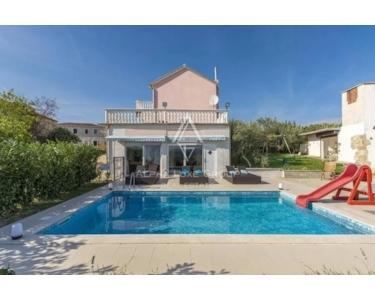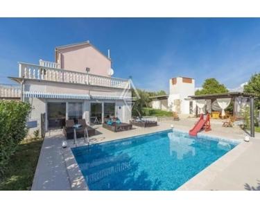 Nur eine kurze Fahrt vom Herzen Brtoniglas entfernt, erstreckt sich dieses 220 m² große Anwesen über ein Untergeschoss, Erdgeschoss und erstes Stockwerk. Das Untergeschoss bietet eine Küche und einen Raum für Erholung und gesellschaftliche Zusammenkünfte, sowie eine Toilette und einen Lagerraum. Im Erdgeschoss befinden sich ein Wohnzimmer, Essbereich, Küche, Toilette und eine weitläufige Terrasse. Das erste Stockwerk besteht aus drei Schlafzimmern, einem Badezimmer und einer weiteren Terrasse. Das Äußere der Immobilie umfasst einen akribisch angelegten Garten mit einem 30 m² großen Swimmingpool, einer Sonnenterrasse, einer überdachten Sommerküche mit offenem Kamin, einem Pavillon und einem Spielplatz für Kinder.