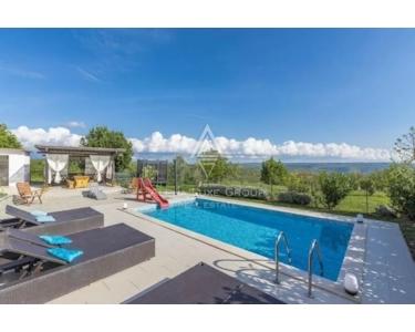 In der malerischen Stadt Brtonigla im nordwestlichen Teil Istriens steht jetzt eine beeindruckende Residenz mit atemberaubendem Panoramablick zum Verkauf. Gelegen auf einem Hügel, 141 Meter hoch, inmitten von Weinbergen und Olivenhainen, zeichnet sich Brtonigla durch seine einzigartige geografische Besonderheit aus - es beherbergt alle Bodentypen, die in Istrien auf seiner Fläche von 33 km² zu finden sind. Der Ort ist eine perfekte Mischung aus Meerescharme, üppigen Weinbergen, Olivenplantagen und grünen Landschaften, die zu unberührten Stränden mit kristallklarem Meer führen. Brtonigla verkörpert sowohl Genuss als auch Abenteuer und bietet eine reiche Palette an Weinkellern, authentische istrische Küche, Naturparks und eine vielfältige Flora und Fauna.