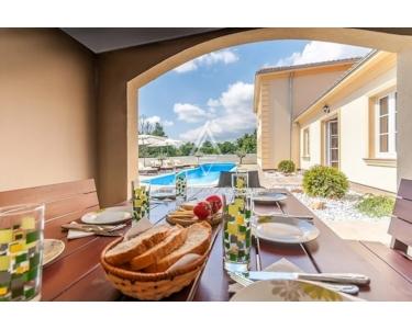 Im Außenbereich überzeugt das Anwesen mit einem eingezäunten, grün gestalteten Garten. Im Mittelpunkt steht ein Swimmingpool mit Sonnenbereich, der Entspannung unvermeidlich macht. Eine überdachte Außenküche, komplett mit offenem Kamin und Sitzbereich, lädt zu intimen Zusammenkünften und unvergesslichen Mahlzeiten im Freien ein.