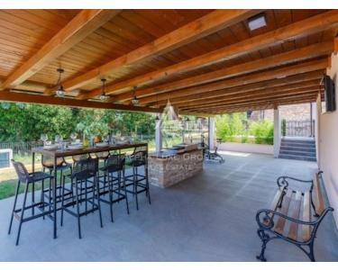 Die Klimatisierung erfolgt problemlos mit einer Wärmepumpe, einer Klimaanlage und Fußbodenheizung. Der Garten ist ein Paradies mit einem 42 m² großen Überlaufpool mit Hydromassage und einer Außendusche sowie einer großen Sommerküche, perfekt für Mahlzeiten im Freien.