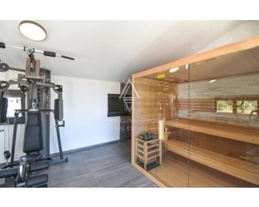 Das Nonplusultra der Entspannung erwartet Sie im zweiten Stock, der dem Wellness- und Fitnessbereich gewidmet ist. Dieser Raum bietet modernste Trainingsgeräte, einen luxuriösen Jacuzzi, eine Sauna, ein Badezimmer und eine offene Terrasse – perfekt zum Entspannen und Regenerieren.