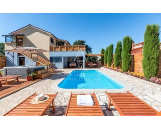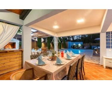 Willkommen im friedlichen Refugium von Loborika, einem idyllischen Dorf nahe Pula im Herzen Istriens, das eine prächtige Villa für das ultimative Familienerlebnis präsentiert.
