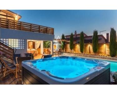 In der gesamten Villa unterstreicht das harmonische Zusammenspiel von Holz und Stein das natürliche Ambiente. Privatsphäre ist auf dem vollständig umzäunten 743m² großen Grundstück oberstes Gebot, das eine abgeschiedene Oase mit einem Schwimmbad und einem Außen-Jacuzzi inmitten eines Entspannungsbereichs bietet. Der Rest des Grundstücks, der sich über 532m² erstreckt, ist mit einem lebendigen, gepflegten Garten geschmückt, der mit bunten Blumen blüht und einen perfekten Rückzugsort vom städtischen Trubel darstellt.