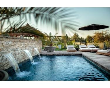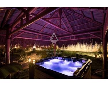 Der liebevoll gestaltete Garten der Villa mit einer Vielzahl von Pflanzen ist ein Zeugnis von Liebe und Sorgfalt. Er beherbergt einen faszinierenden 32 m² großen und in der Nacht beleuchteten Pool aus vulkanischem Stein mit Massage-Wasserfällen, einen luxuriösen großen Jacuzzi und eine Schaukel, die alle zu einer exotischen Oasenatmosphäre beitragen.