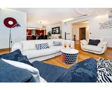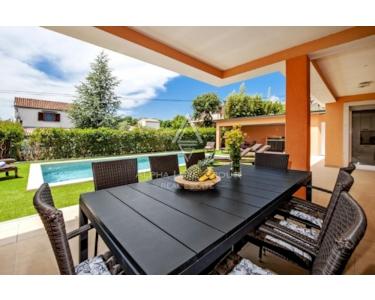 Im ersten Stock des Hauses befinden sich eine „offene“ Küche mit Esszimmer und Wohnzimmer, drei Schlafzimmer und zwei Apartments. Das Wohnzimmer öffnet sich auf eine große Terrasse. Diese moderne Villa verfügt über fünf Klimaanlagen, Sat-TV, Billard, Tischtennisplatten und einen 32 Quadratmeter großen beheizten Außenpool.