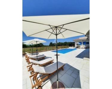 Das Leben im Freien wird durch einen großzügigen 42 Quadratmeter großen Swimmingpool betont, umgeben von einem überdachten Bereich mit Grillmöglichkeiten, ideal für unvergessliche Zusammenkünfte mit Freunden und Familie in dieser idyllischen Umgebung.