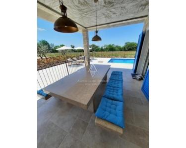 Abseits des Trubels und doch reich an Privatsphäre und Ruhe, repräsentiert diese Villa einen exquisiten Rückzugsort im Herzen der malerischen Landschaft Istriens.
