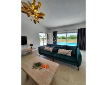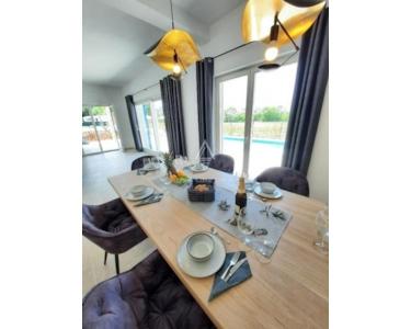 In der idyllischen Umgebung nahe Žminj und Kanfanar liegt diese bezaubernde Villa mit 265 m² Wohnfläche, die einen friedvollen Rückzugsort vom städtischen Leben bietet. Das Anwesen erstreckt sich über zwei Etagen und beginnt im Erdgeschoss mit einem strahlenden offenen Bereich, der eine moderne Küche umfasst, ideal für die Zubereitung traditioneller istrischer Gerichte mit lokalen Produkten. Dieser Bereich geht nahtlos in einen gemütlichen Wohn- und Essbereich über und verspricht eine ruhige Zuflucht. Das Erdgeschoss beherbergt auch das erste von drei komfortablen Schlafzimmern, jedes mit einem Doppelbett und einem eigenen Badezimmer, neben einem praktischen Waschraum.
