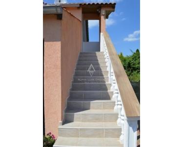 Über die Außentreppe gelangt man in die obere Etage, wo eine weitere eigenständige Wohneinheit auf Sie wartet. Dieser Bereich besteht aus einem Flur, einem Badezimmer, drei Schlafzimmern und einem integrierten Küchen- und Essbereich, der in ein Wohnzimmer mit direktem Zugang zu einer wunderschönen Terrasse übergeht.