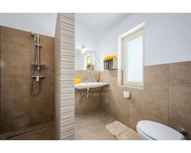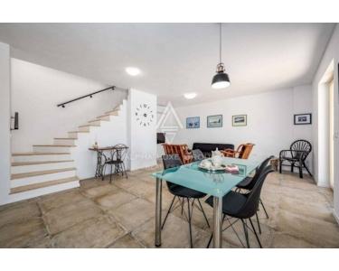Eine elegante Steintreppe führt in die erste Etage des Hauses, wo sich zwei komfortable Schlafzimmer mit jeweils einem Badezimmer befinden. Die Schlafzimmer haben alle Meerblick. Vom Wohnzimmer gelangt man direkt auf die überdachte Terrasse und den Pool. Jedes Zimmer verfügt über eine Klimaanlage und einen Kamin, in den nachträglich ein Holzofen oder Holzofen eingebaut werden kann.