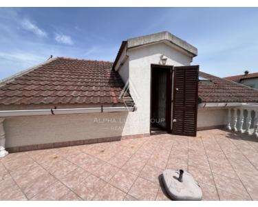 Eine Außentreppe führt zu einer großzügigen Dachgeschosswohnung mit einem großen Wohnbereich, einer kompakten Küche, einem Essbereich und einem Badezimmer. Ein zusätzliches Zimmer kann als Gästezimmer, Büro oder Entspannungsbereich genutzt werden. Diese Etage öffnet sich zu einer großzügigen privaten Terrasse, die perfekt ist, um das mediterrane Klima zu genießen.