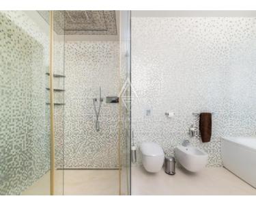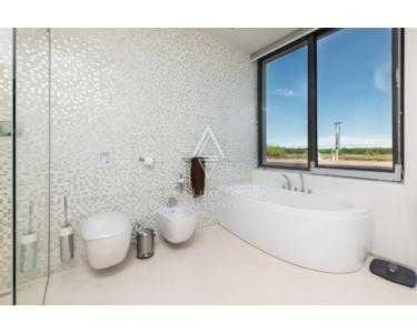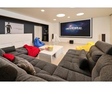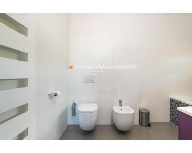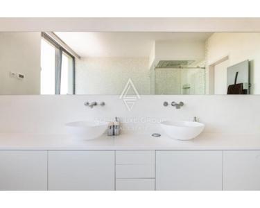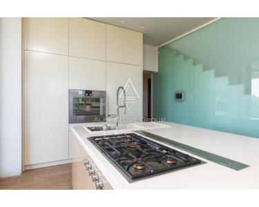 Jeder Aspekt dieser Villa ist sorgfältig für Komfort und Luxus gestaltet, ausgestattet mit einem Smart-Home-System für Heizung und Kühlung, Klimaanlage, Fußbodenheizung und einem Kamin im Wohnzimmer. Die hochwertige Gaggenau-Küche ist mit Touch-Funktion-Elementen komplett. Die Badezimmer ähneln Wellness-Oasen mit Hochfluss-Regenduschen, LED-Beleuchtung und Designer-Handtuchwärmern. Die Vierwagen-Garage im Keller erhöht den Komfort.