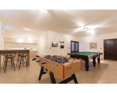 Im Untergeschoss der Villa befinden sich in der Nähe der Küche ein Billardtisch, zwei Toiletten, ein Raum für Wärmepumpen, ein Lagerraum, eine Waschküche und eine Dusche.