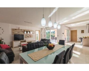 Im Erdgeschoss verbindet sich ein geräumiger Wohnbereich mit einer modernen Küche und einem Esszimmer mit einer großen Terrasse mit Gartenmöbeln und einem Pavillon. Auf der Erdung bietet ein Entspannungsbereich mit großen Glaswänden den Pool, die Terrassen und die Gärten. Die Sammlung verfügt über 48 Quadratmeter große Hydromassage, wobei ein Abschnitt für Kinder von 0,5 Metern tief und einen Abschnitt für Erwachsene von 1,5 Metern tief ist.