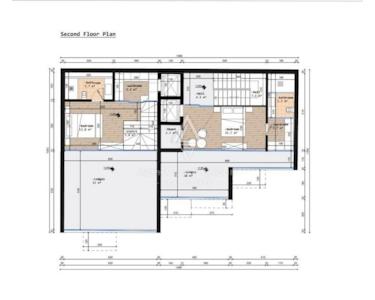 Auf der 2. Etage sind ein geräumiges 15,7 m² großes Schlafzimmer, ein Badezimmer, ein Kleiderschrank, ein Flur und eine 18 m² große Terrasse mit herrlichem Meerblick als Wohnwohnungen vorgesehen.